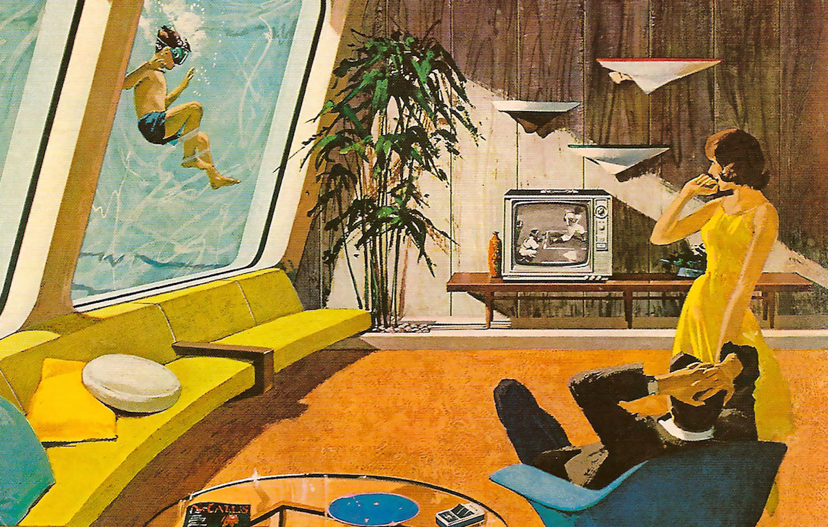 15. I collect old books about the future. I love reading about what people in the past thought the future might look like. My favourite in this genre is The Year 2000, by Herman Kahn and Anthony Wiener (most of its predictions turned out to be wrong). In 1961, Motorola hired Illinois illustrator Charles Schridde to illustrate "The House of the Future", a series of ads (all featuring Motorola's electronic gadgets, of course). Below is one of the ads, but they're all visually stunning. I think they capture the optimism of post-War America. You can see more of them here.
