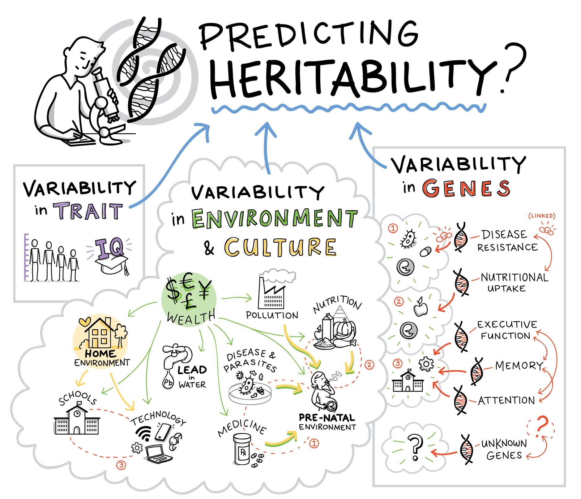 6. 'Cultural Evolution of Genetic Heritability', a recent and important article by Ryutaro Uchiyama, Rachel Spicer and Michael Muthukrishna. (Here is the preprint if you can't access the BBS version.) In summary, they reconcile behavioural genetics and cultural evolution under a dual inheritance framework. They argue their approach cuts through the nature–nurture debate and helps resolve controversies such as IQ. The image below, from Muthukrishna's website, captures the basic idea.