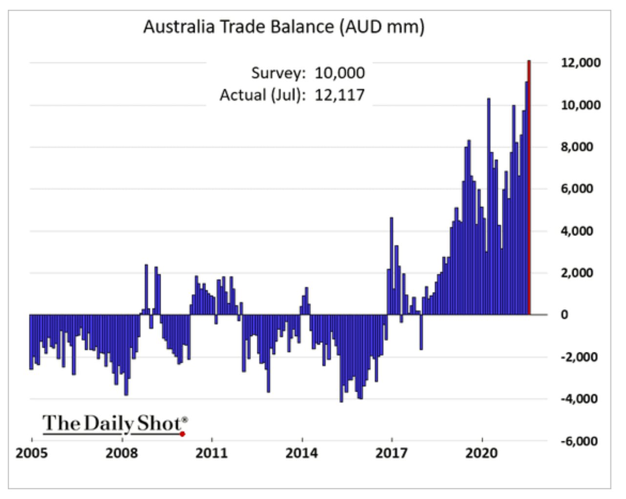 3. Remember Australia's trade deficit? Neither do I. (Chart below, via The Daily Shot.)